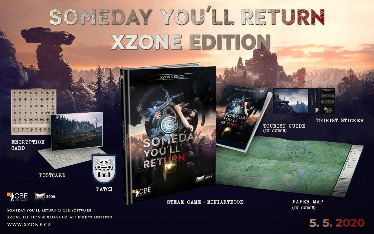 Edition Name: Xzone Edition Platform(s): PC Region(s): Free Publisher: Xzone Release Date: 5.5.2020 Price (RRP): £30.99 Bar Code: (if known) Package Description: Content Description: miniartbook (English+Czech), Steam code with the game (English), patch, postcard, encryption card, tourist sticker, tourist guide (in Czech), paper map (in Czech). Link(s) to source(s): https://www.amazon.co.uk/dp/B087WXD9VC Other Info/Pics: ![]() https://www.amazon.co.uk/dp/B087WXD9VC https://www.xzone.cz/someday-youll-return-pc Last edited by XMutant; 05-23-2020 at 08:40 AM. |