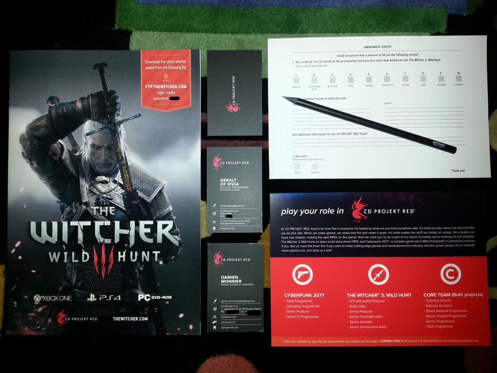 Okay, probably my truly favorite item from E3 is The Witcher 3 press kit. This was given out to select press at a invite only gameplay presentation showcasing the game's awesomeness (I can't go into specifics, just know that it was awesome ). The room was tiny with about 30 others, but with free beer who can complain?