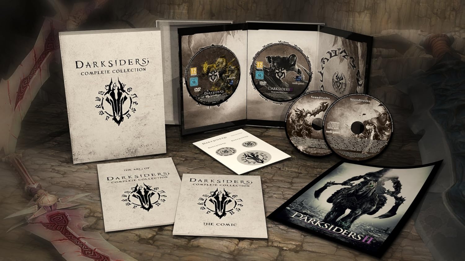 Edition Name: Darksiders Complete Collection 2nd Edition Platform(s): PC Region(s): EU Publisher: Nordic Games Release Date: March 29, 2016 Price (RRP): US: $29.99 UK: £24.99 DE: EUR 29,98 Package Description: WAR - the first Horseman of the Apocalypse - stands accused of inciting a war between Heaven and Hell. Dishonoured and stripped of his powers, WAR must return to Earth in search of vengeance and vindication. Become Death Wield the unstoppable power of Death, the most feared of the legendary Four Horsemen. Battle the forces of heaven, hell and beyond, in an epic world unlike anything you have seen before. Included: -Darksiders -Darksiders II: Deathinitive Edition -ALL DLC content (Maker Armor Set, The Abyssal Forge, The Demon Lord Belial, Death Rides, Angel of Death, Deadly Despair, Shadow of Death, Mortis Pack, Rusanov's Axe, Van Der Schmash Hammer, Fletcher's Crow Hammer, Mace Maximus, Argul's Tomb) -Artbook -Comic Book -2 Soundtrack CDs -Double-Sided Poster -Stickers Content Description: 2 game discs, art book, 2 soundtrack CDs, comicbook, poster, stickers Link(s) to source(s): Amazon US: http://amzn.to/1p5p2OI Amazon UK: http://amzn.to/24ODHPf Amazon DE: http://amzn.to/1LP2jRB Other Info/Pics: ![]()