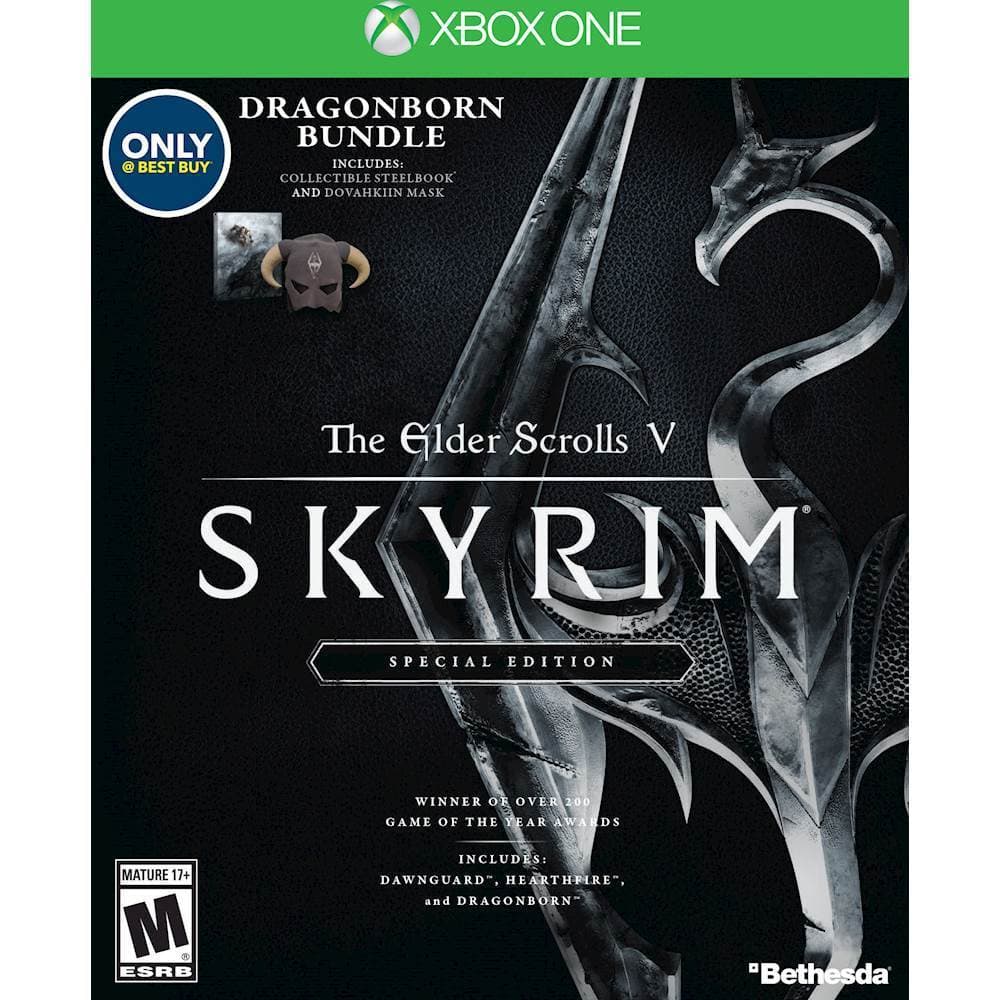 Full Game Name: The Elder Scrolls V: Skyrim Special Edition (Best Buy Exclusive) Dragonborn Bundle  Edition Name: Dragonborn Bundle Platform(s): X1, PS4 Region(s): NA Publisher: Release Date: October 28, 2016 Price (RRP): $74.99 Bar Code: (if known) Package Description: Content Description: Experience the complete Skyrim collection with this Special Edition, which includes the original game, Collectible Steelbook and Dovahkiin Mask Link(s) to source(s): X1 PS4 Other Info/Pics: